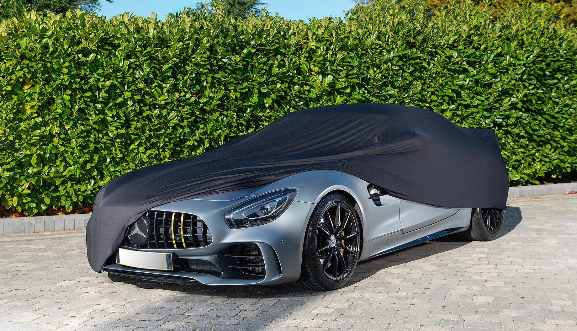 The Mercedes-AMG GT R is not an easy car to cover. With wide arches, aggressive aero, sharp bonnet lines and sculpted rear bodywork, it demands a cover that follows its contours cleanly and securely.