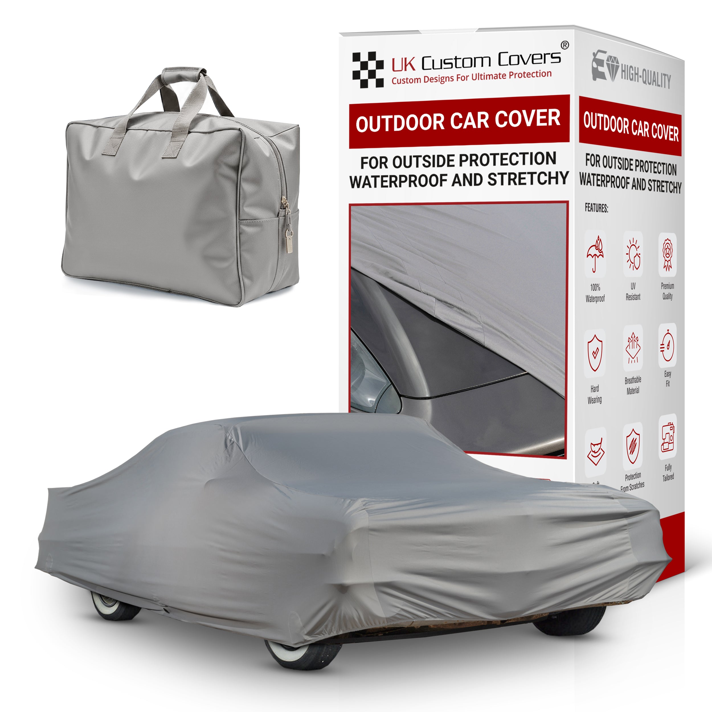 Keep your vehicle protected throughout the year with this waterproof outdoor car cover, precisely tailored for a secure fit that guards against the elements. Crafted by UK Custom Covers, it offers durable, breathable protection designed to maintain your vehicle's appearance and condition outdoors.
