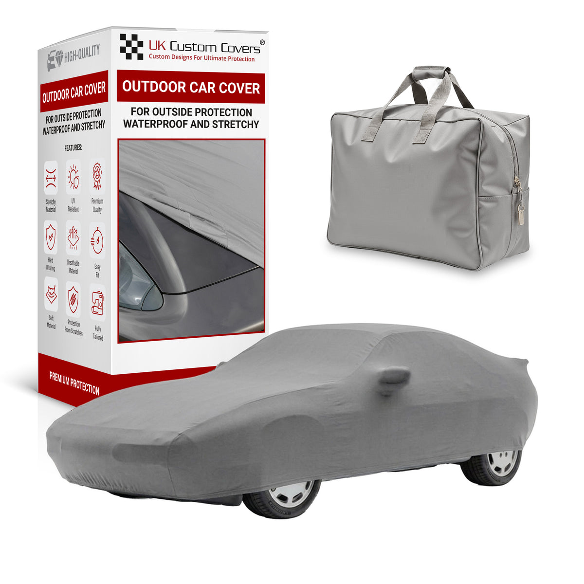 Elasticated hems and under-vehicle straps keep the cover tight even in rough weather, with a free storage bag when not using.